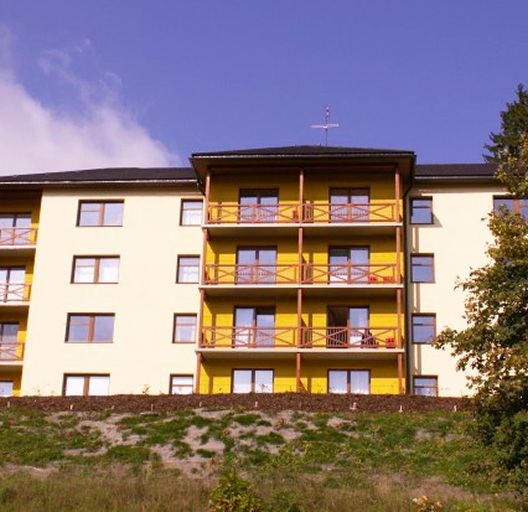 Apartment Lucy is located on the fourth floor of a newly built building in Janské Lázně, right next to the lower cable car station to Černá hora. This luxuriously and pleasantly furnished 100-square-meter apartment with complete amenities offers upscale accommodation for up to six people while providing privacy with its three non-connecting rooms. The apartment includes a garage parking space and an adjacent secure brick cellar for storing skis, snowboards, bicycles, and more.